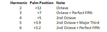 • Chimes, Part 3 — Harmonic fret positions. The Palm Position is the number of frets away from the bar.